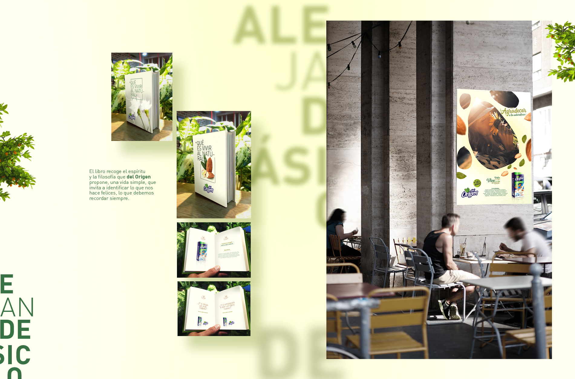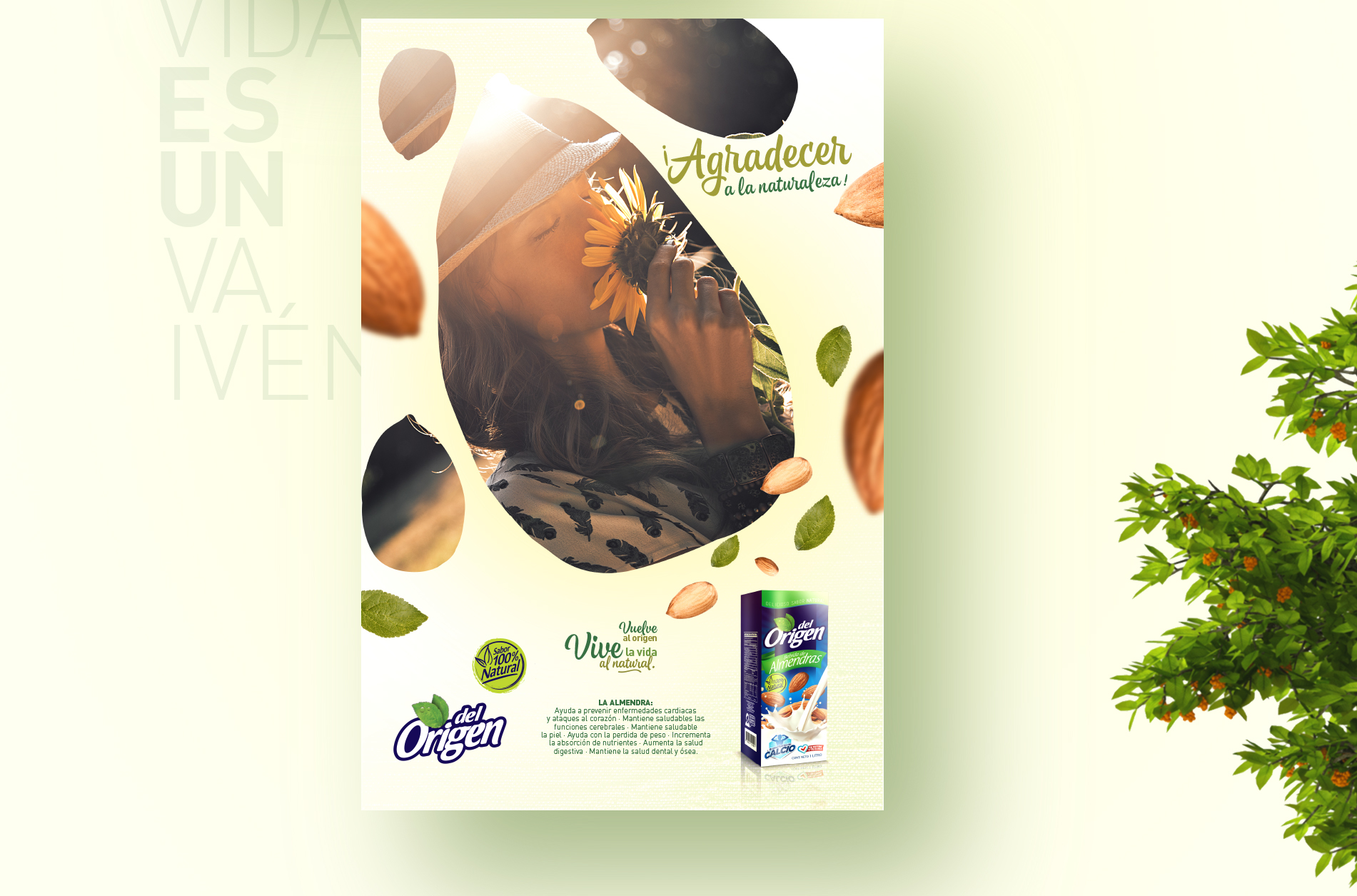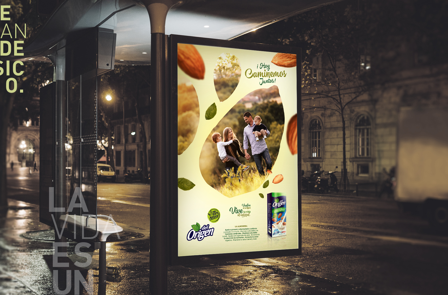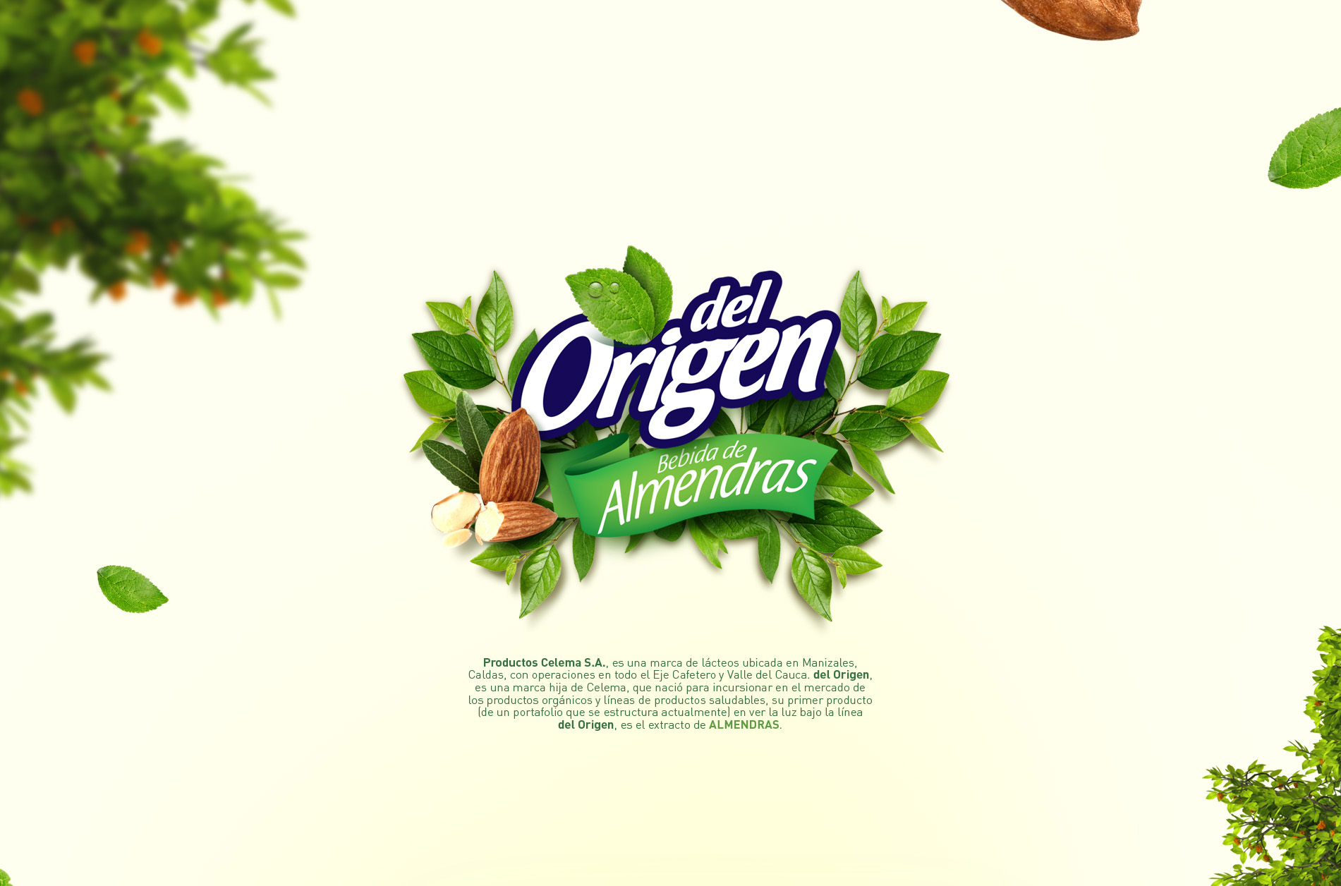 Del Origen es la línea de productos especiales de la Organización Celema S.A., su director de mercadeo nos pidió trabajar esta campaña de lanzamiento de su nuevo producto de Almendras en un ejercicio 360°, el concepto “Vive la vida al natural” fue el eje de toda la comunicación, Vía pública, Tv, Redes, medios impresos, incluso libro alusivo a como llevar una vida sana y a rescatar lo realmente importante en la vida, lo simple, el origen, la vida al natural. Aquí el desarrollo de la campaña
